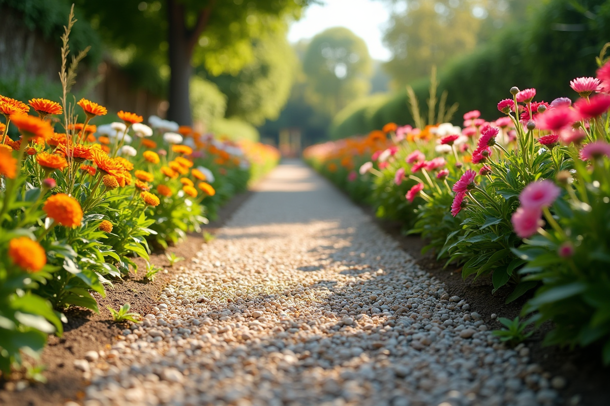 Le gravier reste l’une des options les plus économiques et polyvalentes. Facile à installer et à entretenir, il s’adapte à différents styles de jardins. Disponible en plusieurs couleurs et tailles, le gravier permet de créer des motifs variés et esthétiques. Son coût varie entre 5 et 15 €/m², ce qui en fait une solution abordable pour une allée durable.